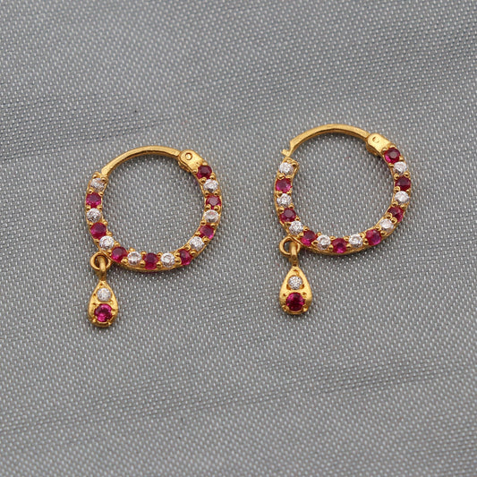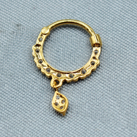 Zircon 18k gold hoop dangle nath nose ring for women,
