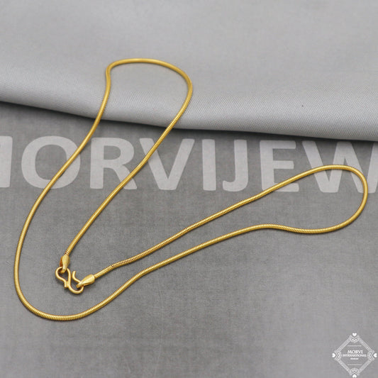 18k Yellow Gold Snake Style Chain Round Handmade Indian Gold Chain 18kt real gold jewelry for women and men, K5114