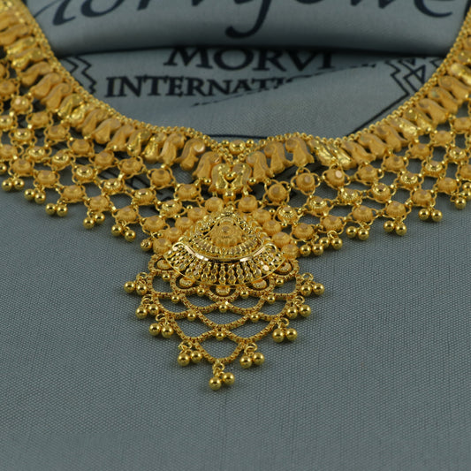 22k Yellow Gold Earrings Necklace set Gift, 22k karat 22kt 22ct Indian Gold Handmade wedding necklace indian Jewelry for gift, K6741
