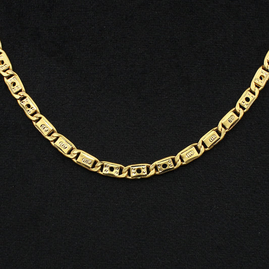 22k Gold Chain Necklace 5mm jewelry handmade gold jewelry from india, engraved biscuit design chain necklace for gift, K1394