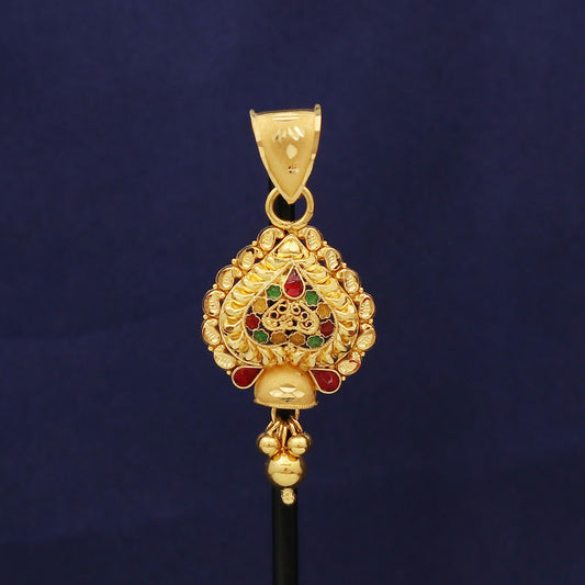 Vintage antique design handmade 22k yellow gold amulet pendant mangalsutra enamel work Indian jewelry