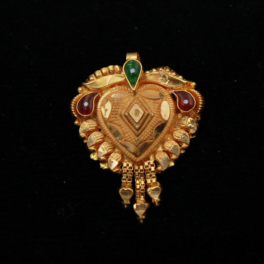 Zircon 22k Yellow Gold Pendant Jewelry Indian , Handmade Yellow gold Locket with string