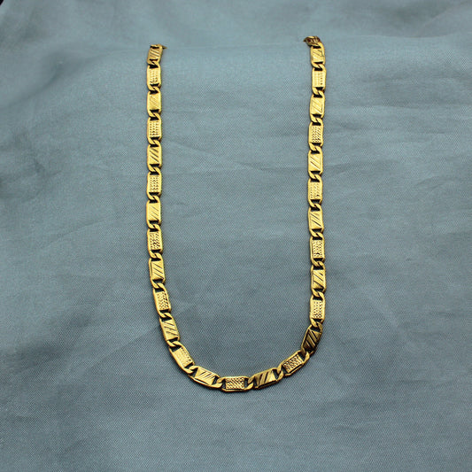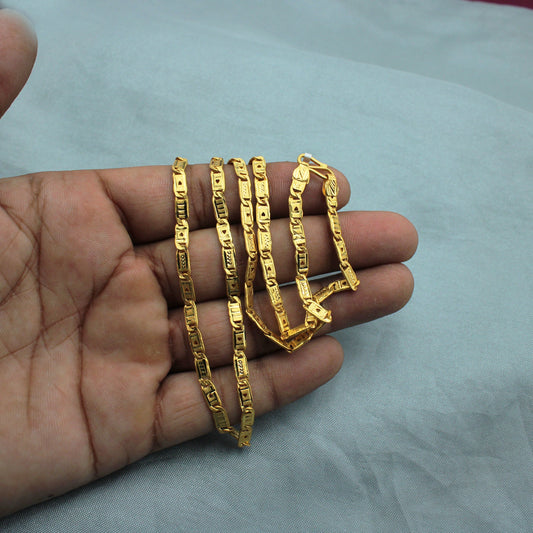 22k Gold Chain Necklace Indian Handmade Jewelry, Biscuit Nawabi Chain Necklace Jewelry, carving gold chain for men boy
