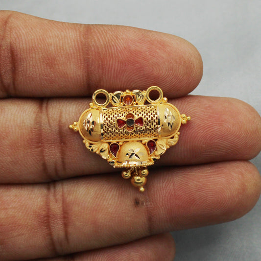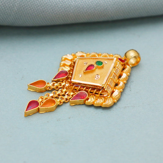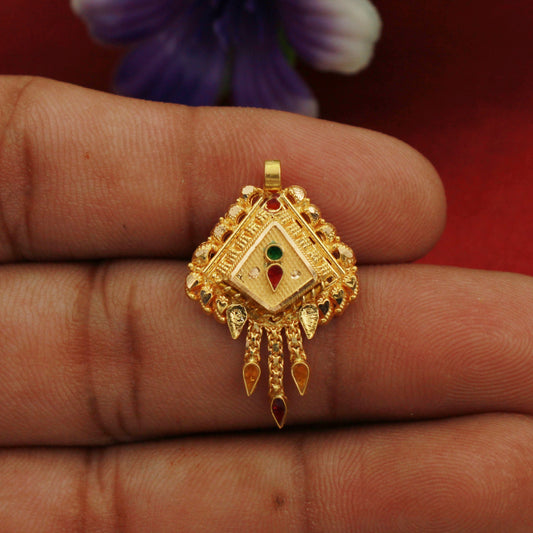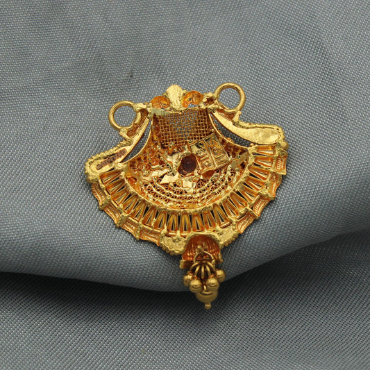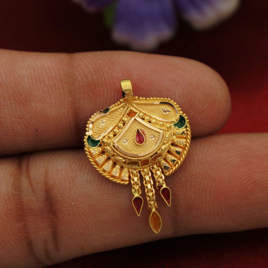 Rajasthani Pure 22kt 22k Yellow Gold Pendant Necklace Jewelry for Gift, Pure gold dangling pendant indian jewelry for gift