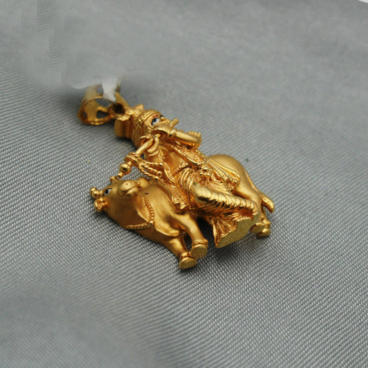Krishna with cow 22k gold pendant jewelry, hindu god jewelry, pure handmade work,