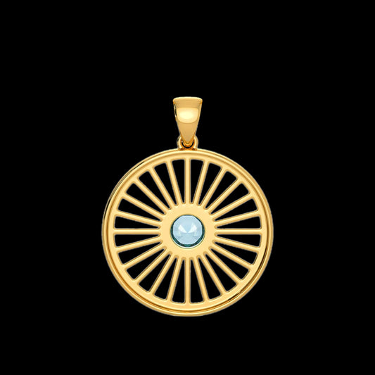 Real Aquamarine 22k Yellow Gold Pendant Locket chakra, Handmade Sun gold pendant, good luck gift, blue stone gold pendant indian jewelry
