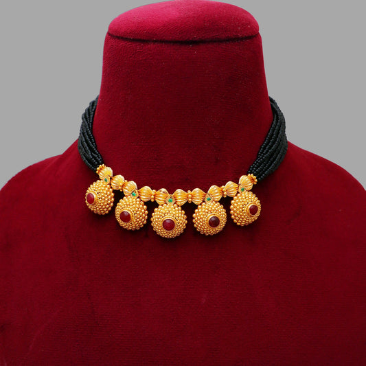 Pure Gold 22k Gold Necklace with Natural Ruby, and gold beads Traditional custom design for wedding party wear