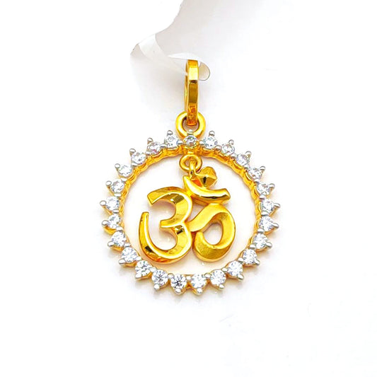 OM aum 22k Yellow Gold Zircon Pendant Locket, Handmade Yellow gold necklace Gold Pendant