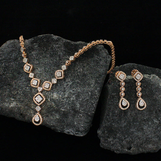 Natural Diamond Necklace with Earrings Diamond Necklace Set Jewelry, Not simulated or lab diamond,