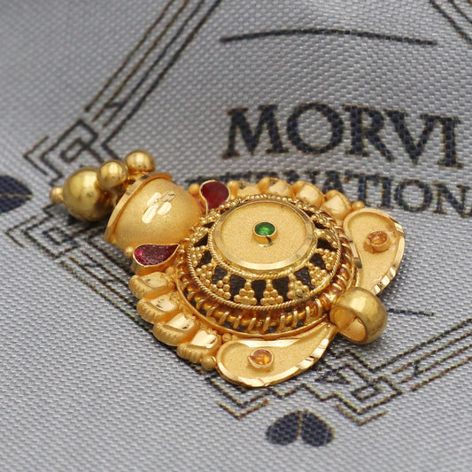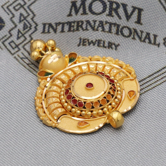 indian style 22k yellow gold pendant necklace Indian traditional handmade jewelry, K3969
