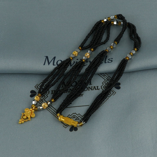 22k gold chain mangalsutra necklace with gold beads and black beads, Indian Wife Jewelry gift, 22k gold pendant