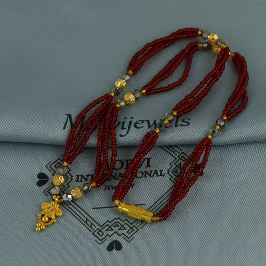 22k gold necklace mangalsutra necklace with small charm pendant amulet and red beads string, Indian Wife Jewelry gift,