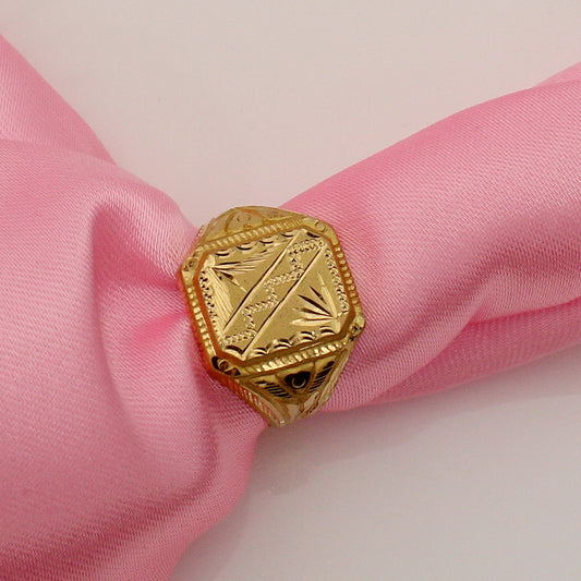 22k Yellow Gold Ring Size US 9.5 and all size, Hand Carved Gold Ring, Men Gold Wedding Party Wear light weight ring, hand made ring