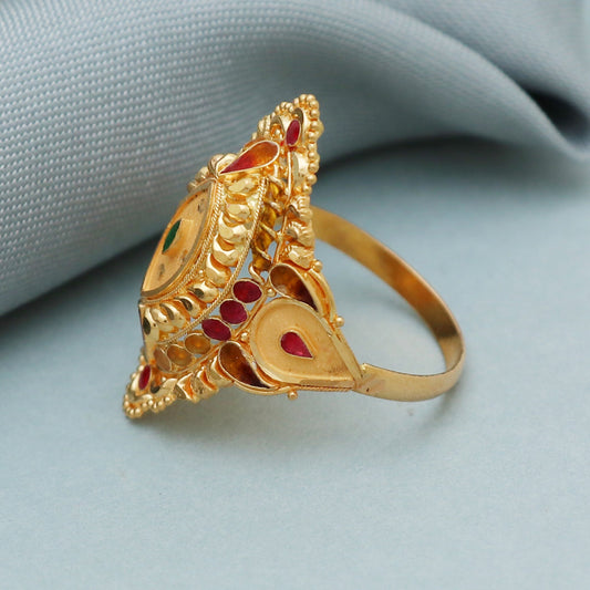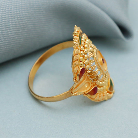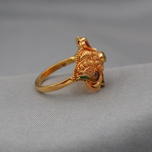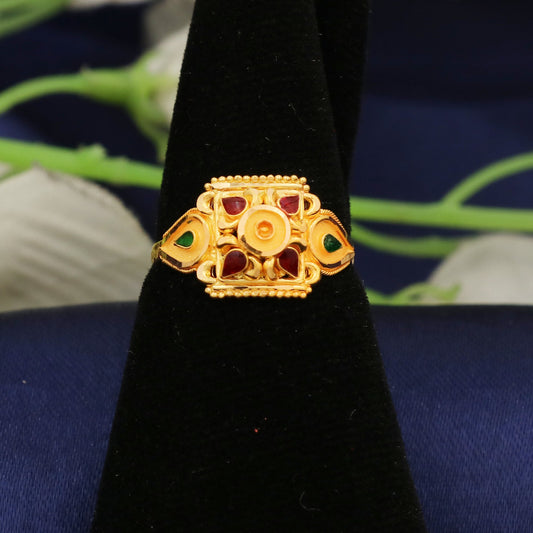 22k Yellow Gold Ring, Indian Gold Ring, Indian Gold Jewelry, Enamel Meena Gold Ring, Wedding Desgner Pure Gold Handmade Ring