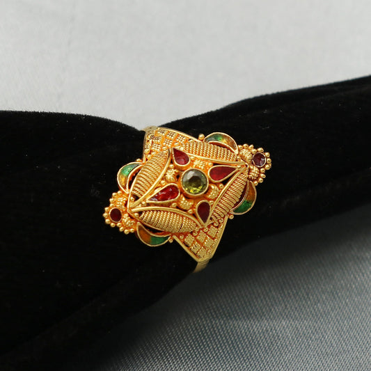 22k Yellow Gold Ring Ladies , All Size, Indian yellow gold Handmade Vintage Traditional Design Fine Jewelry, Gold Meena wedding Enamel ring
