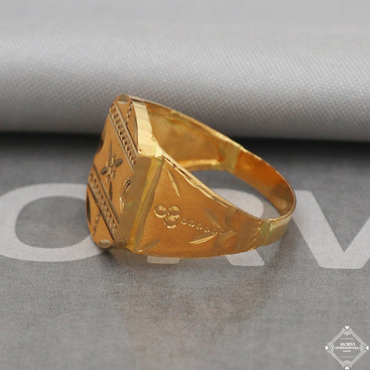 Light Weight engraving hand carved 22k Yellow Gold Ring Indian Men Gold Ring Jewelry Handmade Edwardian Design Party Wear Jewelry , K2232