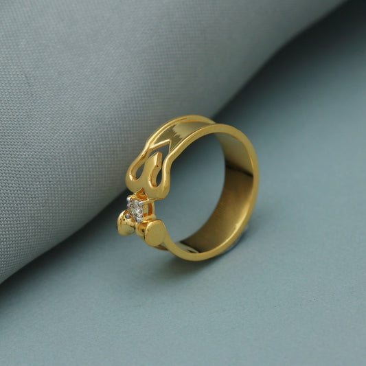Trishool Shiva 18k Yellow Gold Ring , Single Diamond Ring, Lord Shiva Ring, Damroo, The Divine Trishool Ring, Handmade Indian Gold Ring