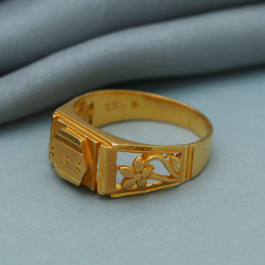 Solid 20k Yellow Gold Ring For Men, Handmade Indian Gold Ring Jewelry for Gift