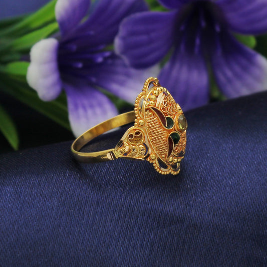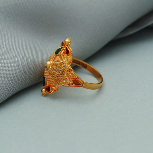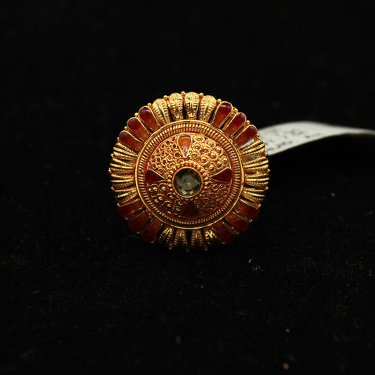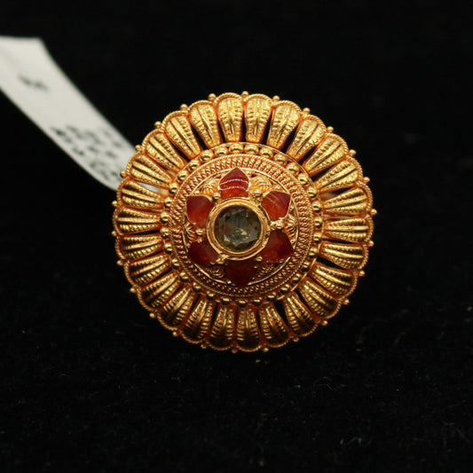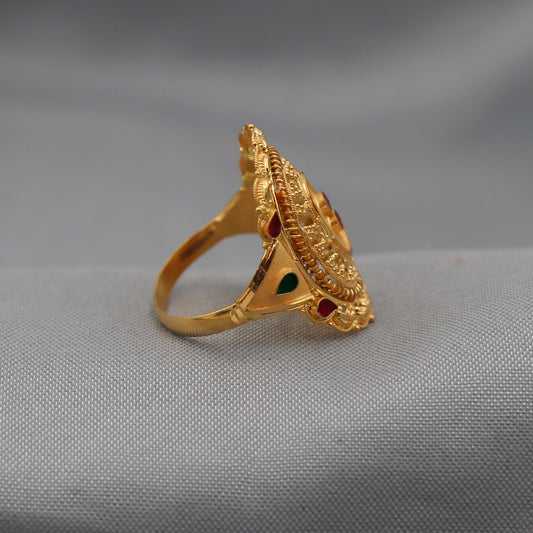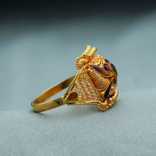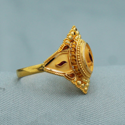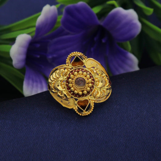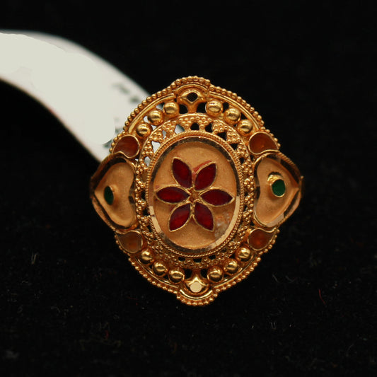 22k Gold Ring Jewelry, Round and with enamel work, Vintage Style Gold Indian Ring,