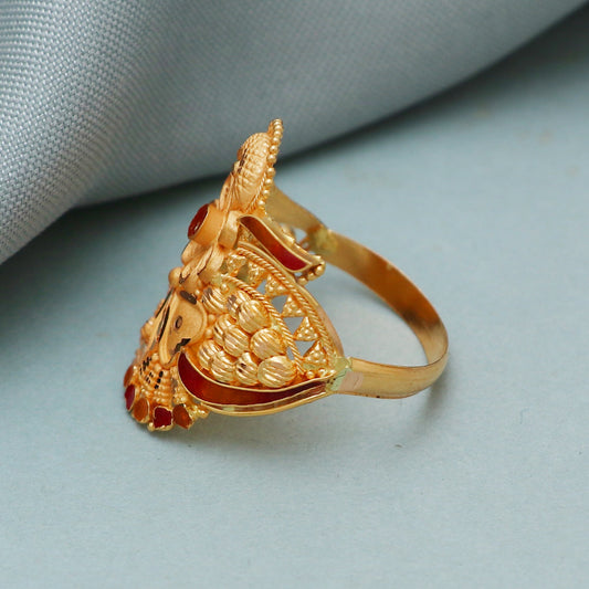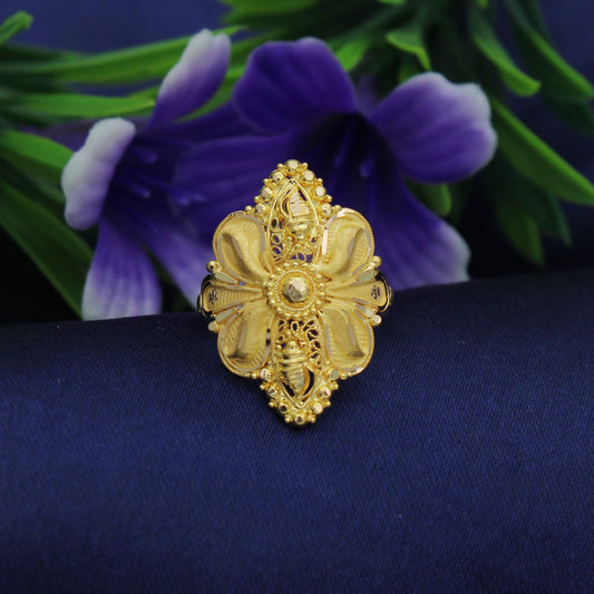 hand carved 22k Yellow Gold Ring , Pure Handmade Indian Gold Jewelry, Ring For Gift, Women Gold ring , K4095