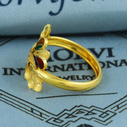 916 22k yellow solid gold ring handmade jewelry for gift, rajasthani indian Style traditional handcrafted gold ring, Meenakari Gold Ring,
