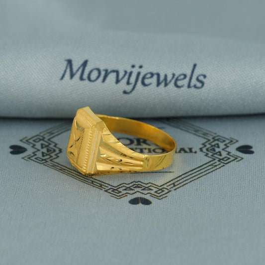 22k Gold Ring, Geometric Embossed Gold Ring, Carved Square Gold Ring, Handmade Traditional Engraved Ring, K6799