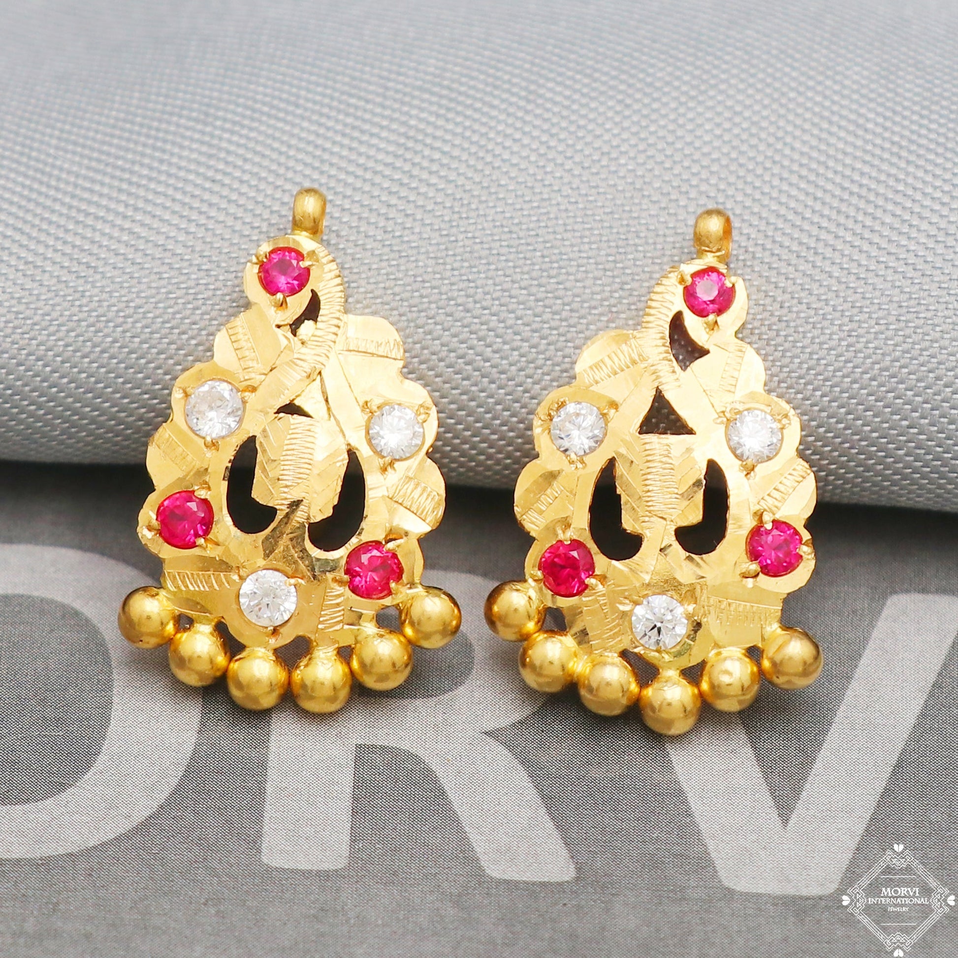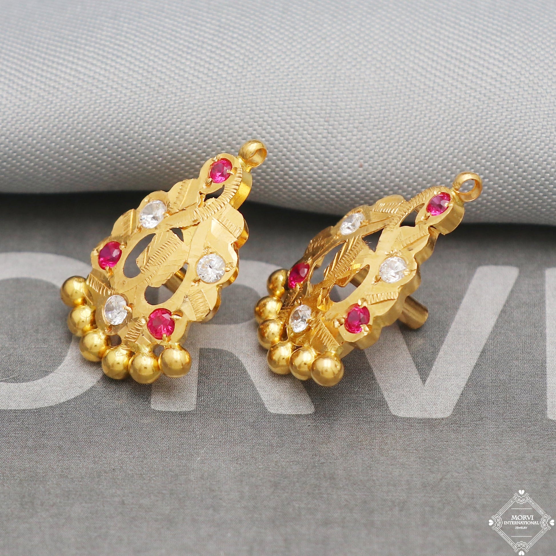 22k 22kt Gold Earrings, Handmade vintage traditional yellow gold earrings Indian jewelry, K5293