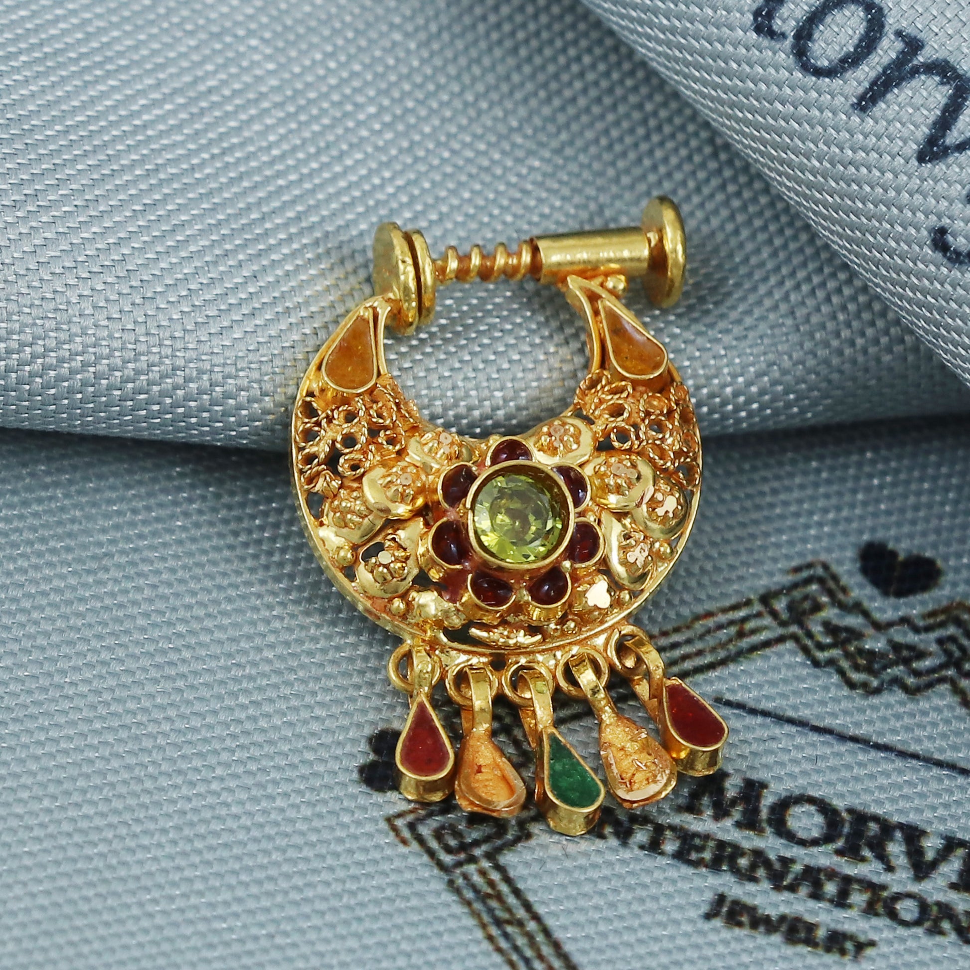 22k Gold Nath Nose Ring | Traditional Indian Nose Jewelry | Pure Gold Nose Ring for Women, K5378