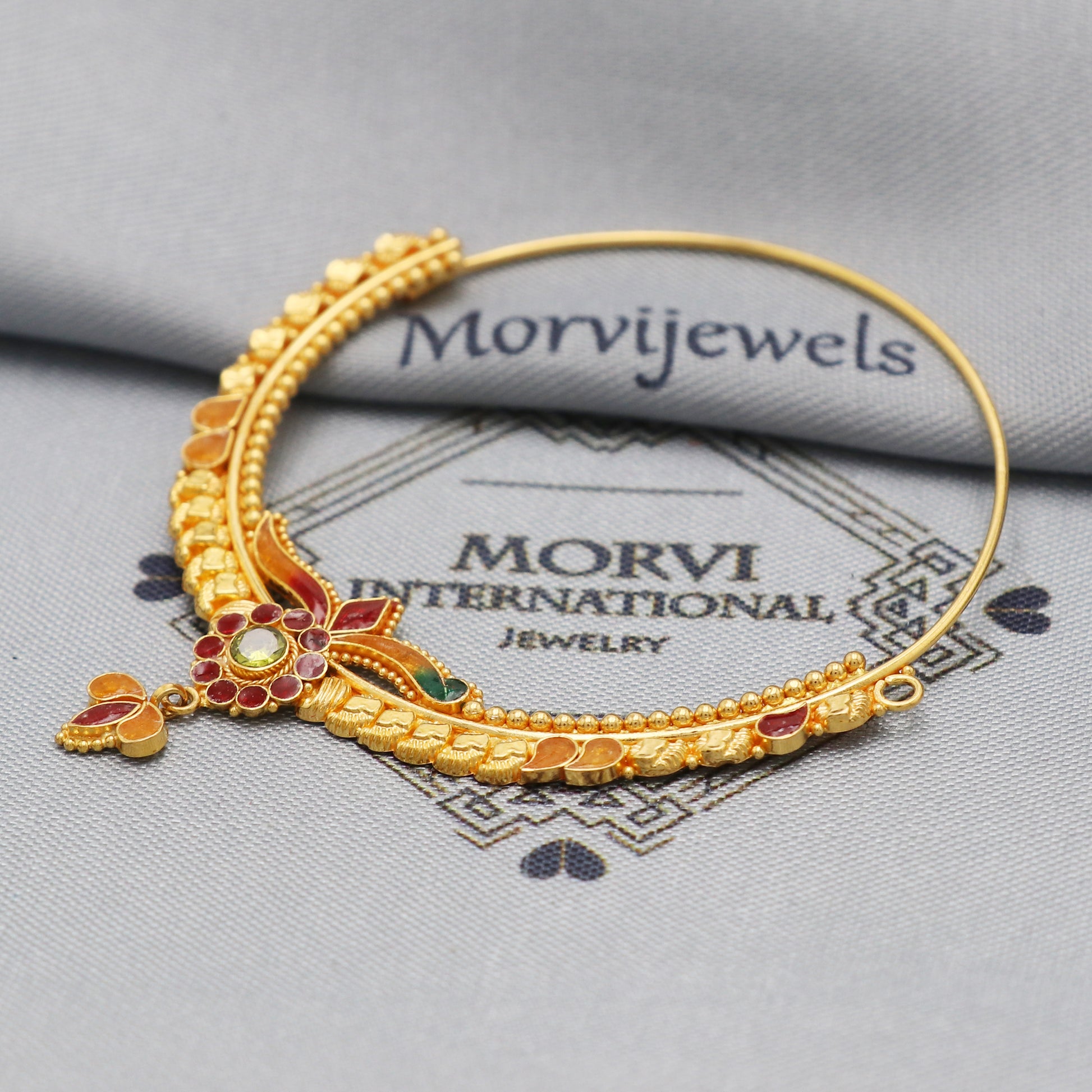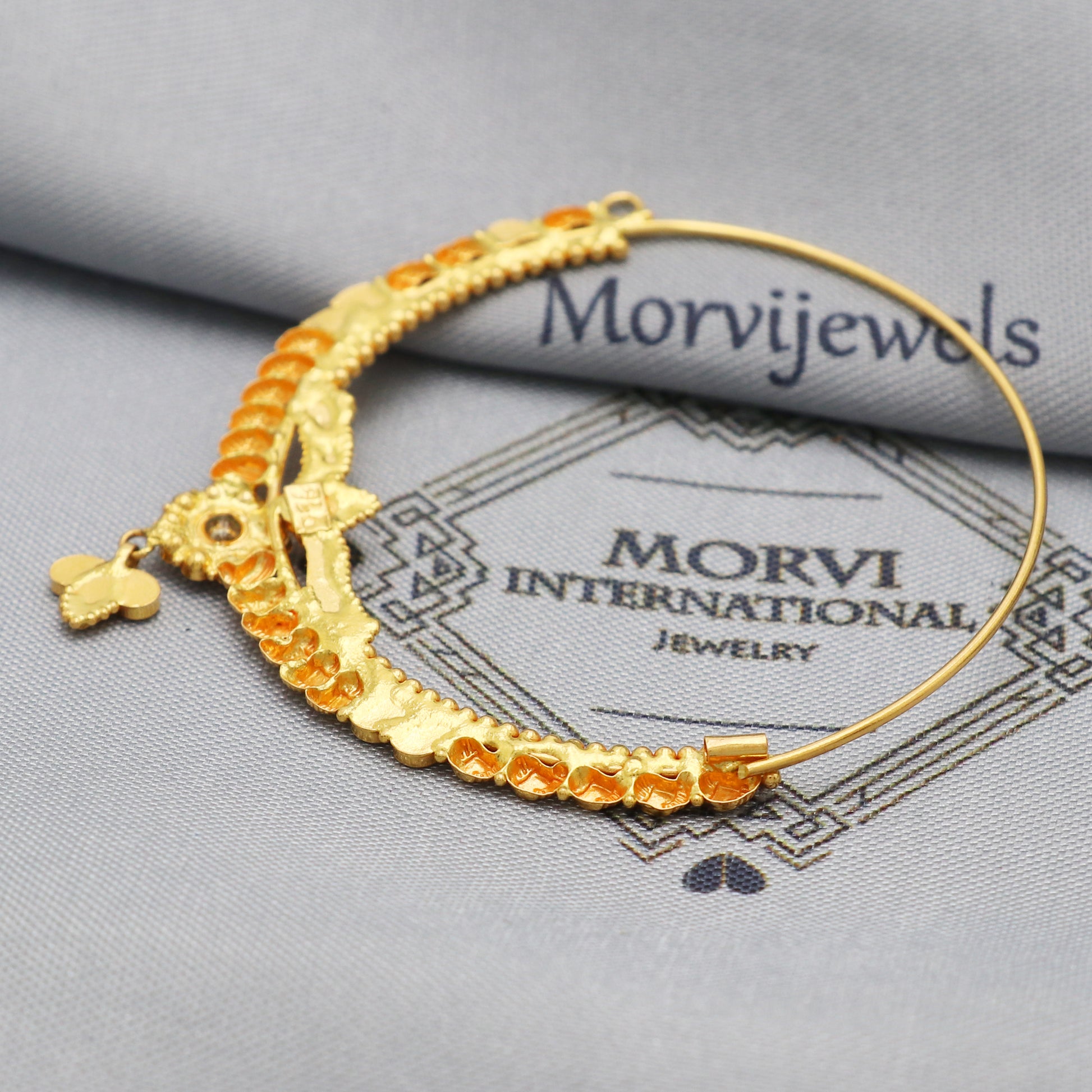 22k Gold Nose Ring Indian Vintage Design Pure Gold Nath / Earrings Nose Ring Traditional Handmade Nose pin, 22k Yellow Gold Nath Wedding Jewelry, K5505