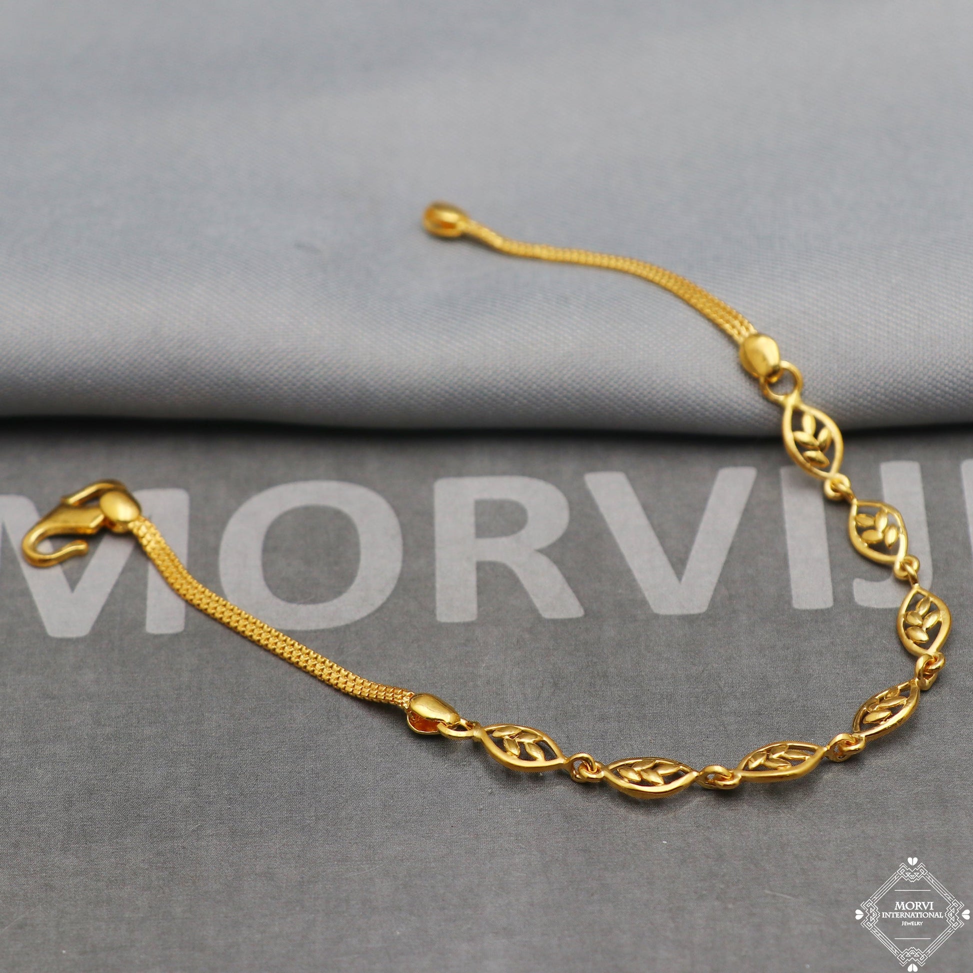 Floral 22k Yellow Gold Link Slim Women Bracelet 7 inches Indian Handmade Women Jewelry, K5349