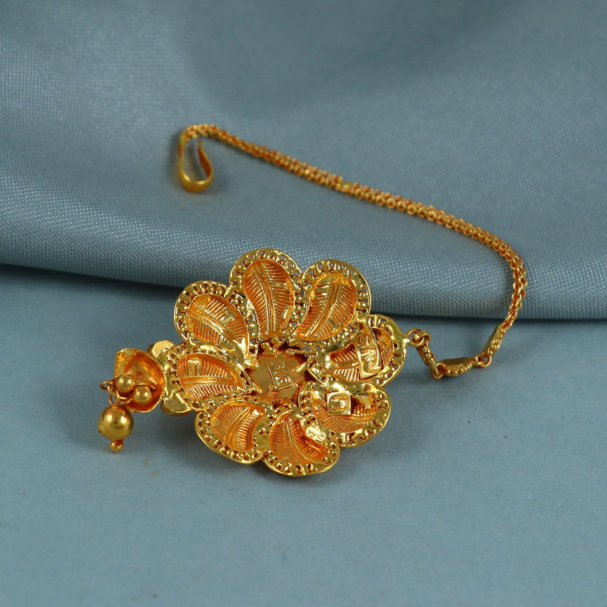 22k Gold Maang Tikka Head Jewelry For Wedding Party Wear, Traditional Indian Gold Handmade Jewelry for Gift