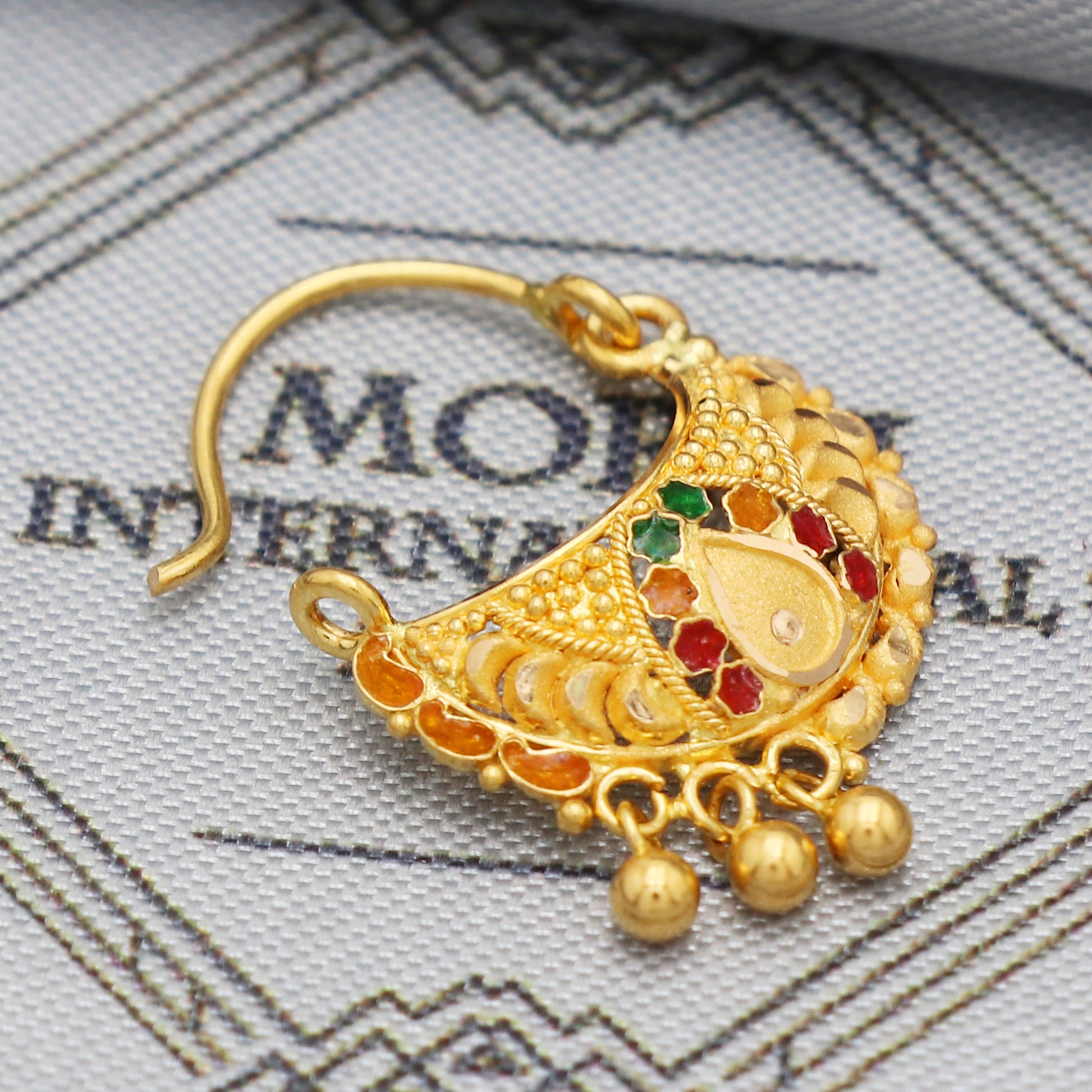 solid 22karat gold ethnic nose ring, wedding indian style pure gold nose ring, K5499