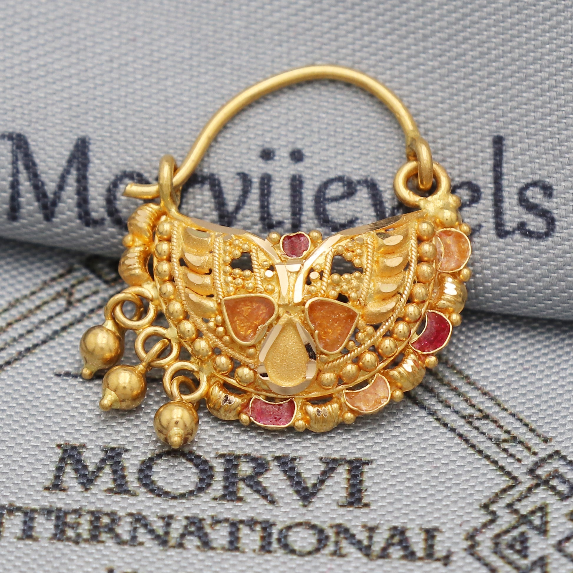 wedding party wear nose ring in 22k real solid gold, Wedding Indian Style Nose Ring Jewelry for Gift, K5494
