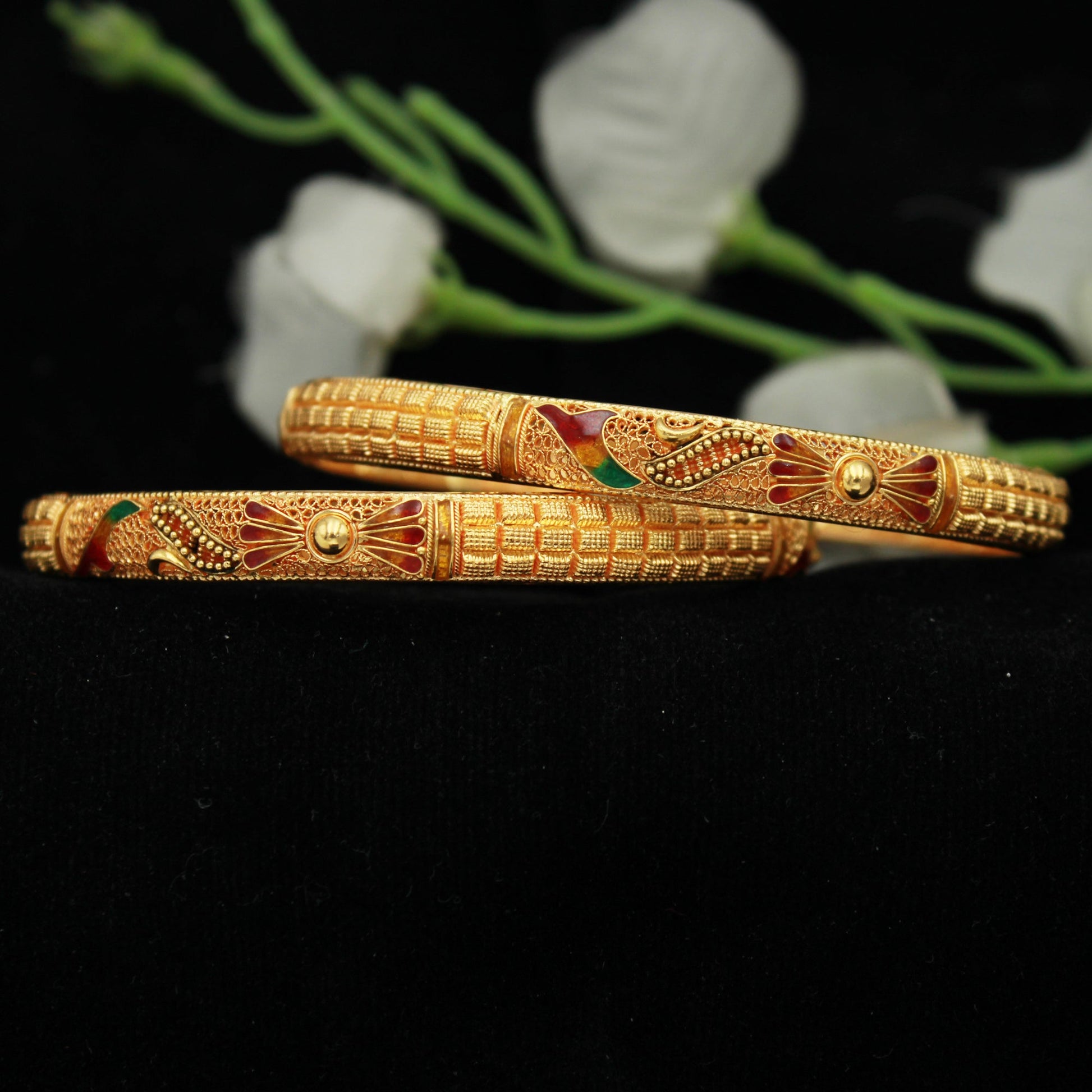 18k gold bangle, 18k yellow gold bracelet pair, indian gold bangle, traditional bangle, wedding gold bangle, indian jewelry meena design, inner wax